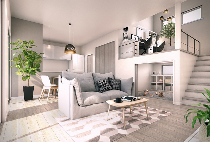 また、スキップフロアとリビングの間には壁などの仕切りがなく、部屋同士が空間でつながっているため、スキップフロアを勉強や仕事の場所として使っているときにも、常に家族の気配を感じながら過ごすことができます。